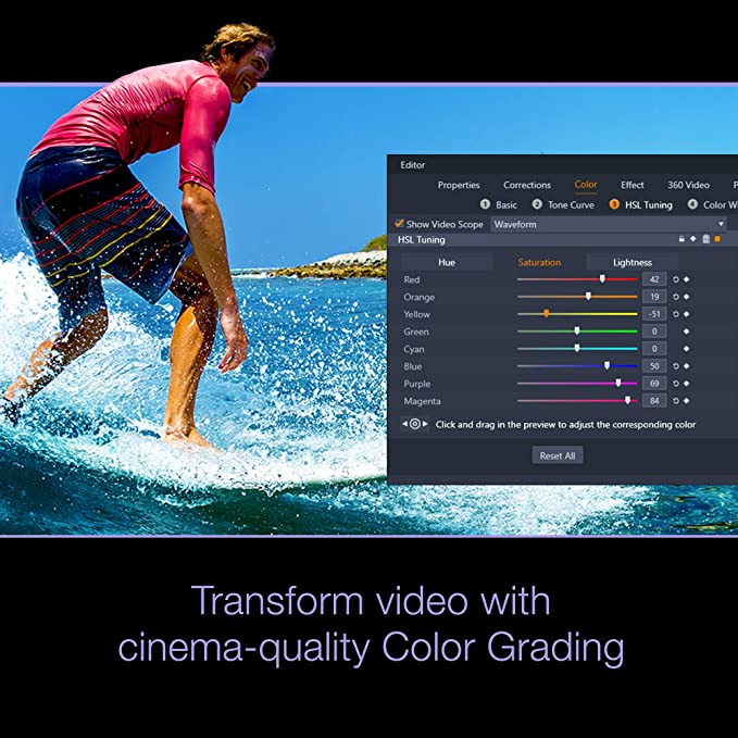 • Master your production: Explore unlimited creative possibilities with Selective Color, Stop Motion Animation, 360 video editing, and more with the Ultimate editing toolkit
